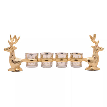 A festive gold metal stag tea light holder. 43x15x7cm.