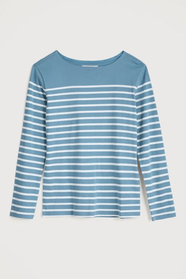 Soft organic 100% cotton sailor shirt with stripes, boat neck and long sleeves.