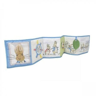 Ideal for play and discovery and classically styled on the much-loved Peter Rabbit from the Beatrix Potter storybooks. This beautiful fabric folding book is a wonderful developmental toy to help encourage and stimulate young minds as well as explore and deepen the bond between baby and parent through play. Featuring multiple textures, crinkles and activities and includes a baby-safe mirror, teether and high contrast colours for early visual stimulation, encouraging sensory play and helping to develop baby's early motor skills. Easy to store and transport and an exquisite way to encourage tummy time.