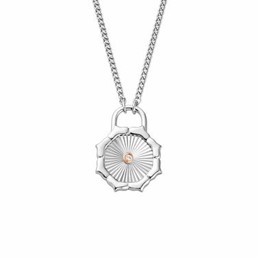 At day’s end, they are the stars which sparkle in the dark blanket of the heavens as you close your eyes to dream of them again. Our timeless Nos Da Silver Necklace (pron. nors dah, “good night”) represents nights you wish would never end and a light that guides you. It features a sterling silver setting with 9ct rose gold detailing surrounding a central white topaz gemstone.