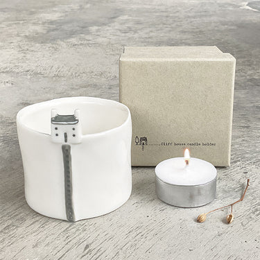 A charming porcelain tea light holder featuring a delicate illustration of a ladder leading up to a cliff house. Crafted with East of India’s signature rustic style and glazed finish, it creates a warm, cozy glow—perfect for adding a touch of calm and charm to any room.
