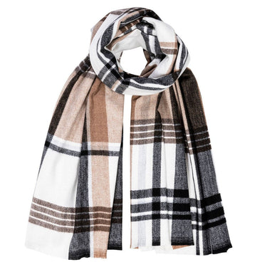 Wrap up warm this season in the beautiful Myla Check Woven Scarf that features soft black, tan and white colours.