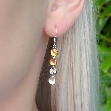 Lovingly handmade in Wales, this stunningly unique, handmade, metallic earring set features four different, eye-catching tones of metal - Gold, Rose Gold, Silver and Pewter. Lightweight to wear, they are perfect for extra sparkle whether doing errands or dining with friends.