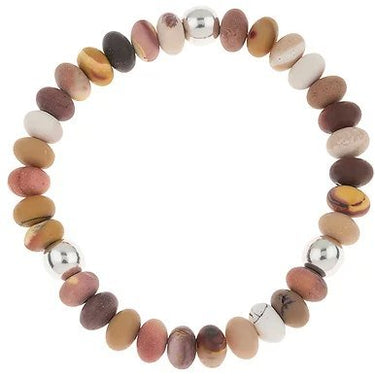 With their rich, earthy tones these stunning semi-precious beads really make a statement. Mookaite is a natural stone that got its name from where it was first found - Mooka Creek on the west side of the Kennedy Ranges in Western Australia. This is jewellery to fall in love with! This bracelet is elasticated for ease of wear.