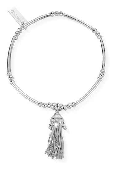 ChloBo Didi Tassel Bracelet This hand-made piece features 925 sterling silver noodles, mini discs and classic beads. A Didi tassel charm lets negativity flow through each strand and hold on to what makes you feel good.