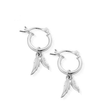 ChloBo Double Feather Small Hoop Earrings. The Double Feather Hoops in the small 12mm style, crafted from solid 925 sterling silver. The feather charm is worn as a symbol known to connect us with spirits, find a feather on your path and see it as a message from your guardian angels.