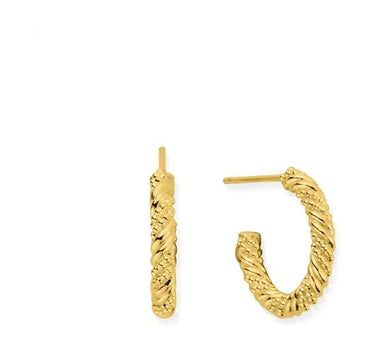 Bring positivity and passion into your life with the Entwined Passion Hoop Earrings. The twisted rope-like texture of these hoop earrings has been inspired by the mythology surrounding the sky gods and how they anchored the sun using a rope to prolong its unique qualities, allowing us to absorb its joyful rays. With a butterfly back fasten and dainty design these will be your new go-to everyday pair of hoop earrings.