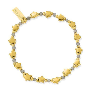 This ChloBo Mystic Nights Bracelet is inspired by the starry night sky! Made with the semi-precious stone Labradorite. Its beautiful luminous colours reflect the magic of the moonlit sky, and each star charm offers hope to guide you through the darker times, encouraging you to shine no matter what. This ChloBo bracelet is perfect for wearing alone or adding something different to your stacking bracelets.