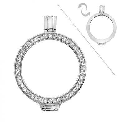 A beautiful coin keeper from the Emozioni Collection, this reversible Coin Keeper is made from sterling silver featuring a single diamond set at the top of the keeper on one side and diamond set all the way around the keeper on the other.
