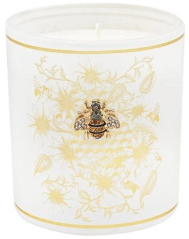 This beautiful candle pot features a floral honey scented soy wax candle.