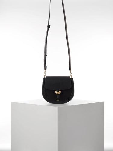 A modern, versatile crossbody bag with a tonal suede front pocket and signature molten metal clasp. Wear it over the shoulder or across the body. Includes branded dust bag for protection.
