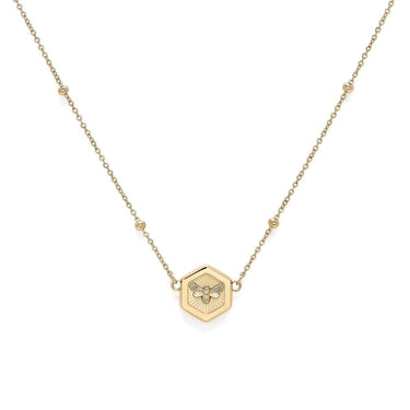 Striking and modern, the Minima Bee and Honeycomb Pendant Necklace is the latest way to wear everyone's favourite bee. Inspired by the beehive, the geometric gold-plated pendant features a tiny bee. Finished with an on-trend bead detail chain, this is one you won't want to take off.