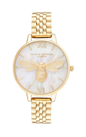 This luxurious watch has a gold-plated bee in the centre of the mother of pearl dial.