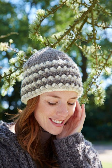 This hand-knitted beanie is made from natural materials and colours. Creating a beautiful neutral colour palette.