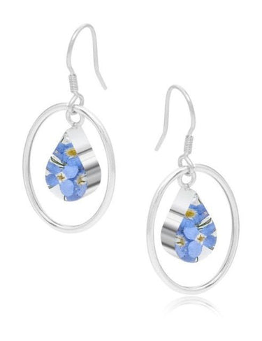 These pretty sterling silver and forget me not drop earrings are beautifully crafted from sterling silver and set with a clear resin