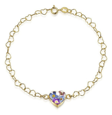 This bracelet is from the Shrieking Violet Purple Haze collection. This is a gold-plated bracelet with comes with a heart chain and a real flower pendant. You match this with any outfit casual or dressy. Why not give this as a gift to a loved one.