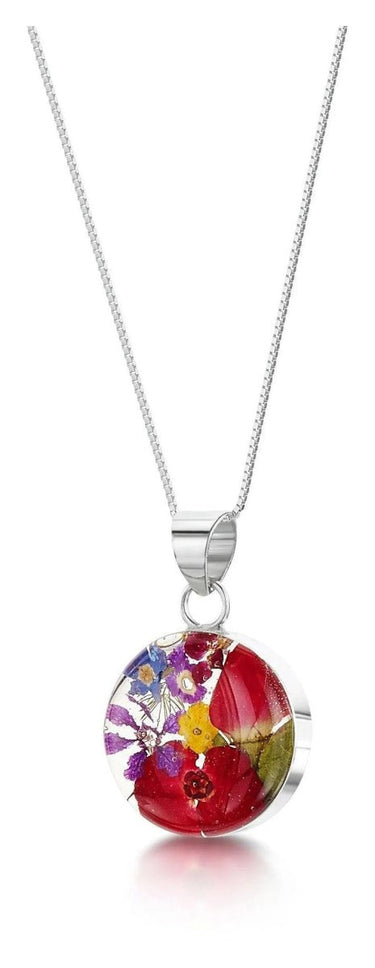 This is a gorgeous round pendant necklace that has been handmade with love from real flowers.