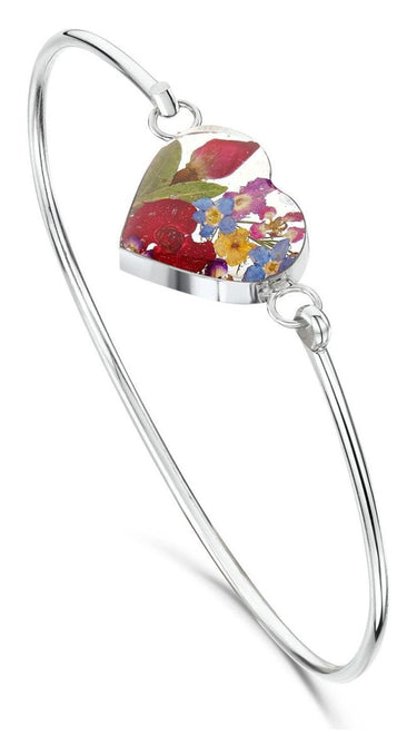 Handcrafted in Sterling silver and made with real flowers, this beautiful heart-shaped bangle from Shrieking Violet is a beautiful way to accessorise any outfit.
