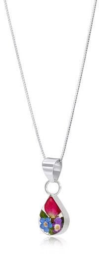 Sterling silver necklace with real flowers set in this cute little teardrop using clear resin. Each necklace is unique handmade with real flowers, that vary slightly in colour, size and shape.