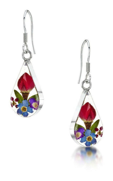 Shrieking Violet Silver Teardrop Earrings with Mixed Flowers