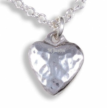 Small planished heart pendant – a Cornish tin planished heart pendant on a silver plated belcher chain.