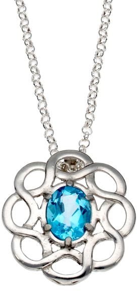 Large Topaz Celtic Knot pendant – Cornish tin pendant in an endless Celtic knot design around a central blue topaz semi-precious stone. Comes on a 18'' Sterling silver belcher chain.
