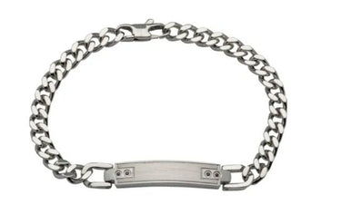 Stainless Steel Matte & Polished Bar Bracelet with Black Stones