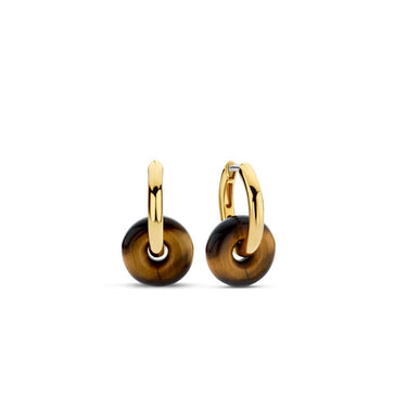 Flaunting two large tiger-eye brown tones hanging from gold plated hoops, these beautiful earrings from Ti Sento - Milano will go with just about any outfit.