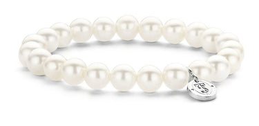 This classic pearl bracelet with a silver Ti Sento tag, with the company logo on one side and on the other side reveals the hallmarks. This bracelet is strung on an elasticated band making it easy to wear and goes with almost every outfit!