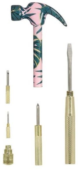 Mixed POS of 12 6-in-1 hammer tools in three designs; Safari Green, Pink Paradise and Blue Lagoon. Includes hammer and four screwdrivers in multiple sizes. Product size: 200 x 70 x 20mm POS size: 307 x 254 x 200mm
