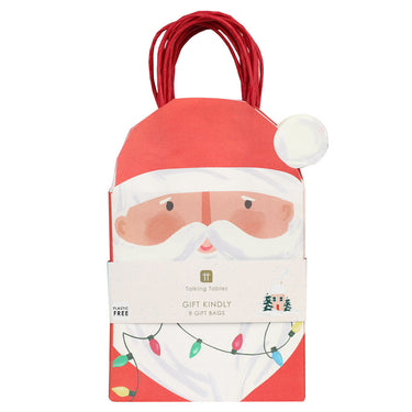 Pack of 8 santa shaped paper christmas gift bags. 18cm.
