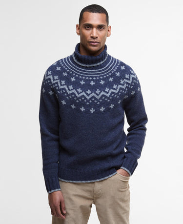 Barbour Men's Hewton Fair Isle Roll Neck Jumper in Navy
