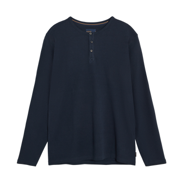 Signal DerekSi Grandad Waffle Long Sleeve Top in Deep Marine