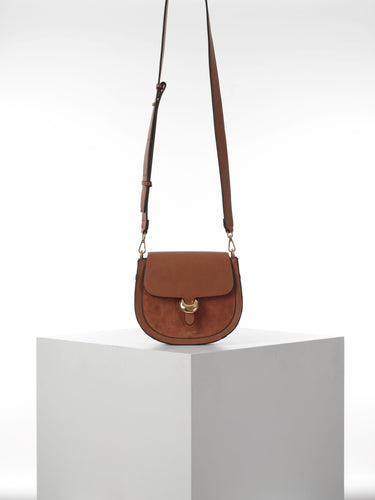 A modern, versatile crossbody bag with a tonal suede front pocket and signature molten metal clasp. Wear it over the shoulder or across the body. Includes branded dust bag for protection.