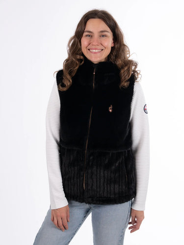 Made from ultra-soft faux fur, the Camil jacket blends smooth and textured finishes for a refined look. Its cosy hood adds warmth and style, while the sleeveless design makes it perfect for layering.