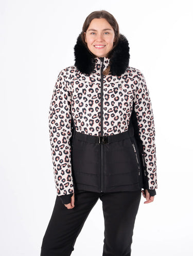 Hit the slopes in style with this leopard print ski jacket from Aulp. Waterproof, windproof and breathable, this jacket is both practical and stylish. Features a removeable hood, ski pass pocket, lycra cuffs and waterproof zippers.