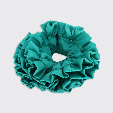 Make a bold statement with this teal ruffled scrunchie.