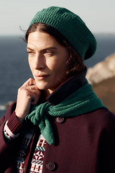 Stay snug and stylish in this classic green beret, made from soft merino and recycled nylon.