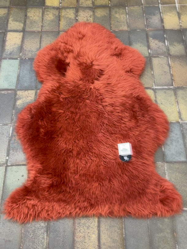 Quality Large sheepskin rug dyed in colour Rust, measuring 90 x 60cm with some stitch marks to the back of the skin which will not effect the quality or grading of this Rust coloured sheepskin rug.