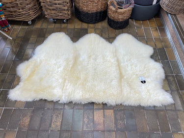 This Triple sheepskin Ivory is one of our best selling sheepskin rugs, having a straight edge on one side makes it ideal for placing by a fire place, next to a sofa or even as piece of soft furnishing for seat or back of sofa.