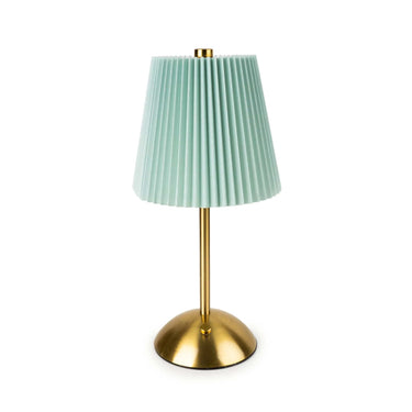Illuminate any space with this pleated lamp shade in duck egg. This lovely table lamp features a sleek metal base and a warm gold finish. This is perfect to add a pop of colour to any room.