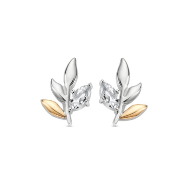 Royal Clogau Sterling Silver Leaf Stud Earrings With Topaz 3SROY929