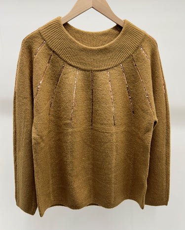 A beautifully soft boat neck top, featuring a downward stream of sequin sparkle on both the front and back.