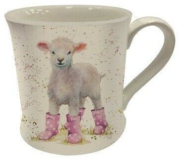 Mug painted with a lamb in pink wellies by the renowned artist, Bree Merryn.