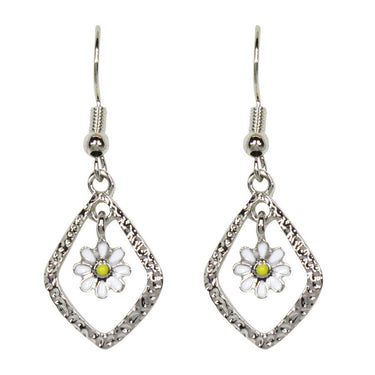 Beautiful freeform irregular 4 sided with white daisy earrings from our Freeform Collection. Every piece in the collection is unusual, these exquisite and eye catching designs will make a perfect addition to any outfit at any time of the year.