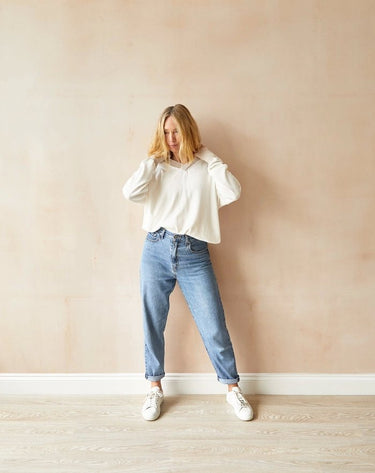 The Chalk Jolanda Jumper is a fine cotton knit jumper, with contrasting neck line and cuff. Perfect jumper for pairing with your favourite jeans for an elegant look.