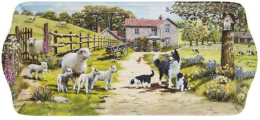 Decorated with a collie and sheep design and made from strong study melamine plastic, this tray has two moulded handles for easy lifting and carrying. Rectangular in shape, it has round corners and a raised edge and is suitable for many tasks around the home and workplace. It is ideal for carrying drinks or for serving sandwiches for an afternoon delight.