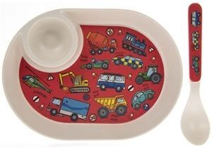 Transport covered dinner set will be sure to keep your little ones entertained while they eat. With its cool red tone and an array of colourful printed vehicles, this fun range is perfect for any little one.