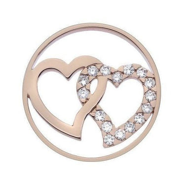 The Emozioni Companionship features a design of two rose gold-plated hearts interlocking. Symblosing true love and understanding. One heart is a smooth rose gold heart whilst the second heart is filled with white cubic zirconia stones making a sparkly statement!