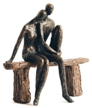 You can almost feel the warmth and love between this charming pair as they while away time on a park bench.This bronze colour sculpture is a tasteful tribute to love and companionship, showing a couple looking relaxed and comfortable in each other's company; the woman with her head tilted on his shoulder and the man with his knee up.